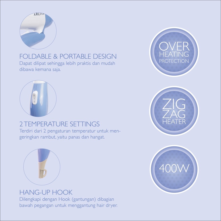 - Hair Dryer dapat dilipat sehingga mudah untuk dibawa traveling