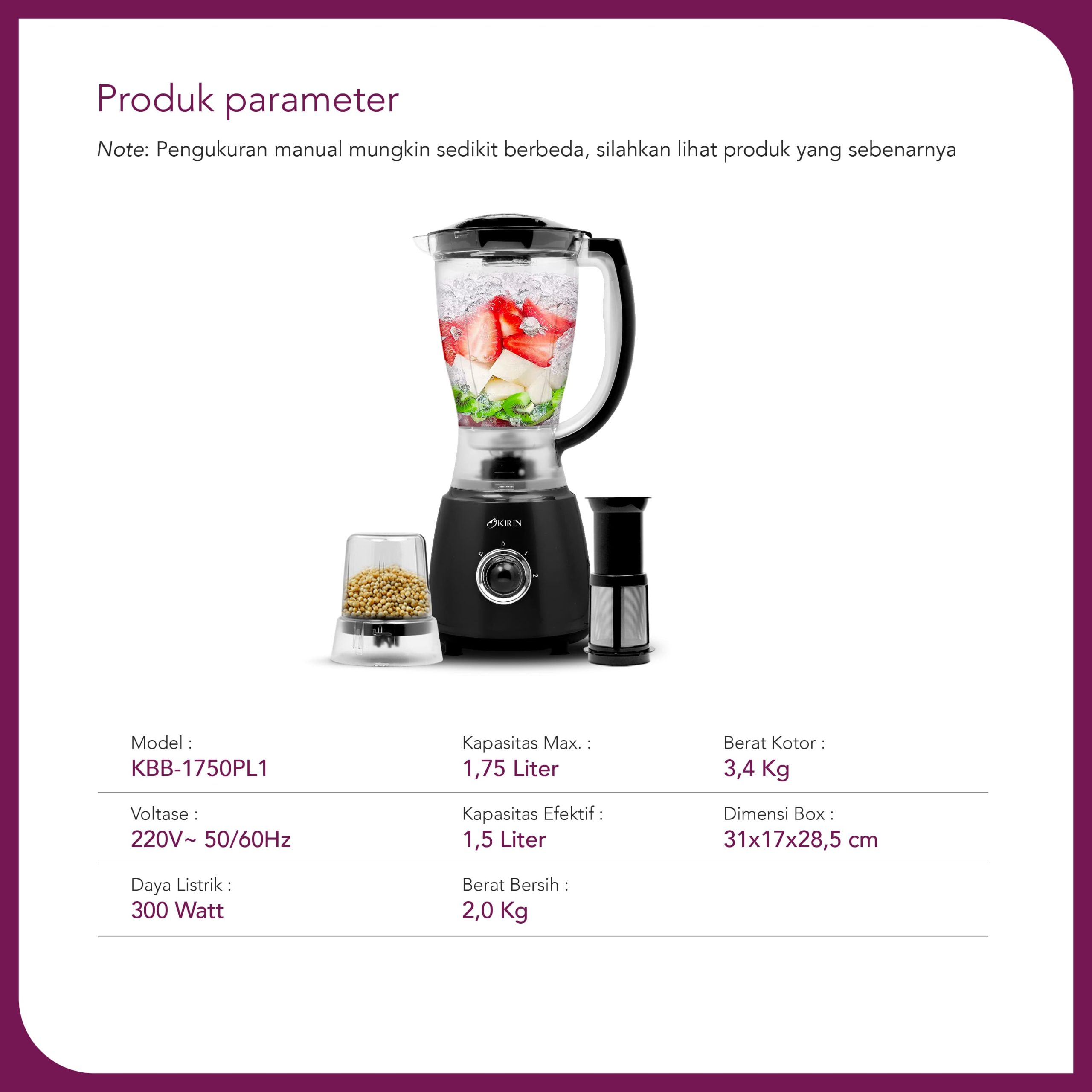 - Kapasitas maksimal 1.75L (1.5L untuk pemakaian yang efektif)
