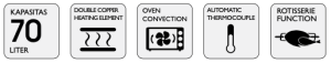 – Tersedia Rotisserie, Baking Pan, Wire Rack, dan Sundries Tray