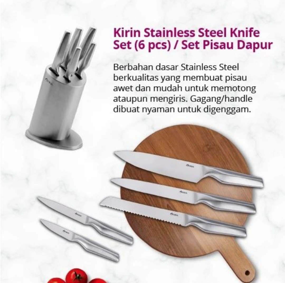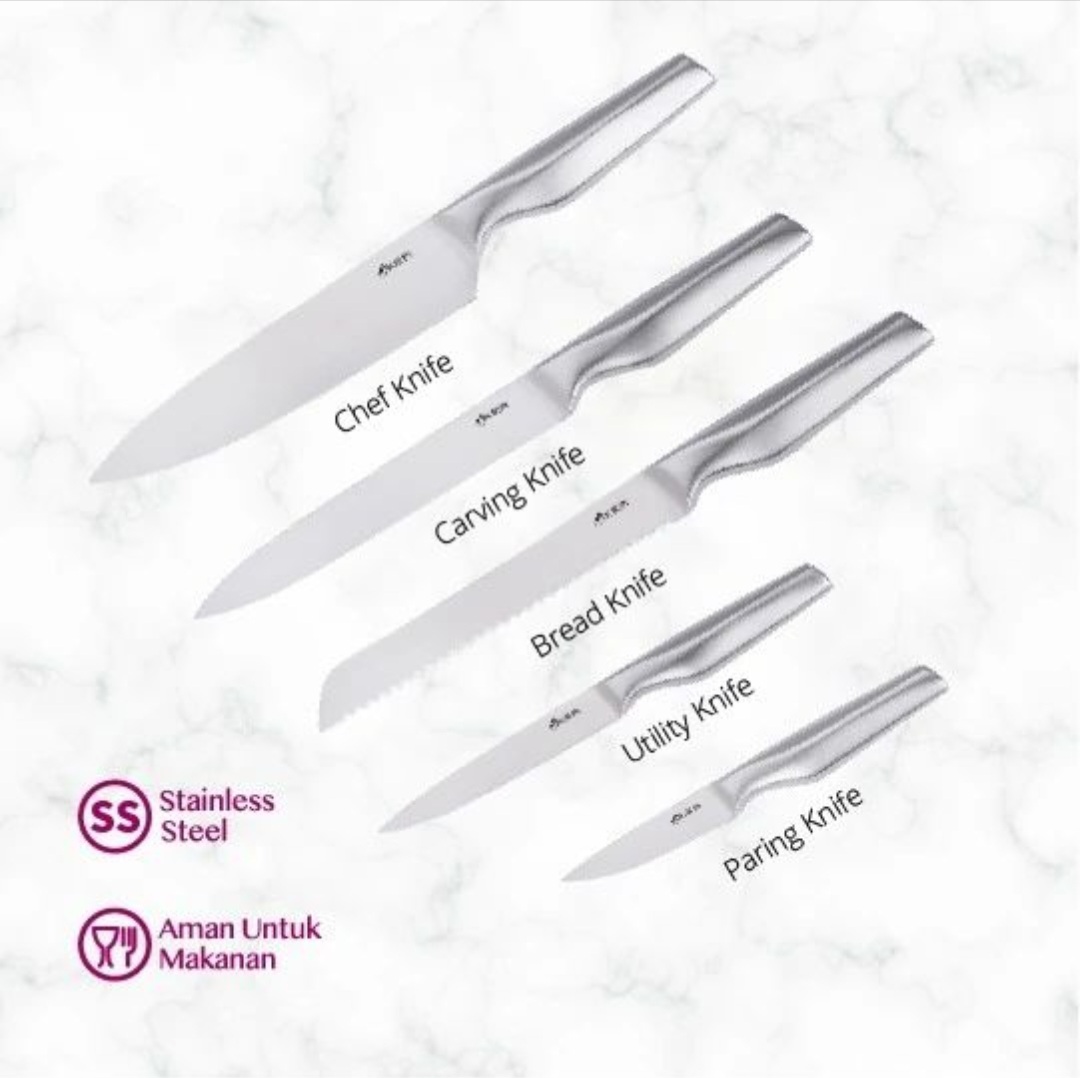 - Dilengkapi Knife Stand untuk penyimpanan pisau yang aman dan menjaga kualitas mata pisau