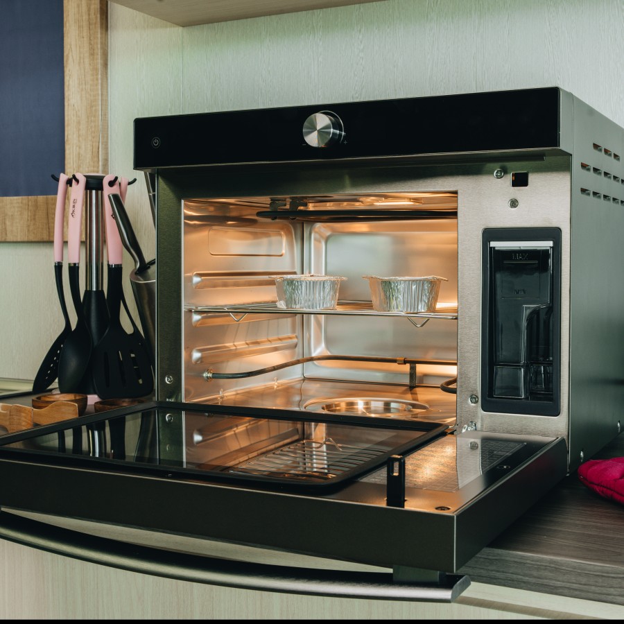 – Tersedia Baking Pan, Steaming Tray, dan Dripping Tray