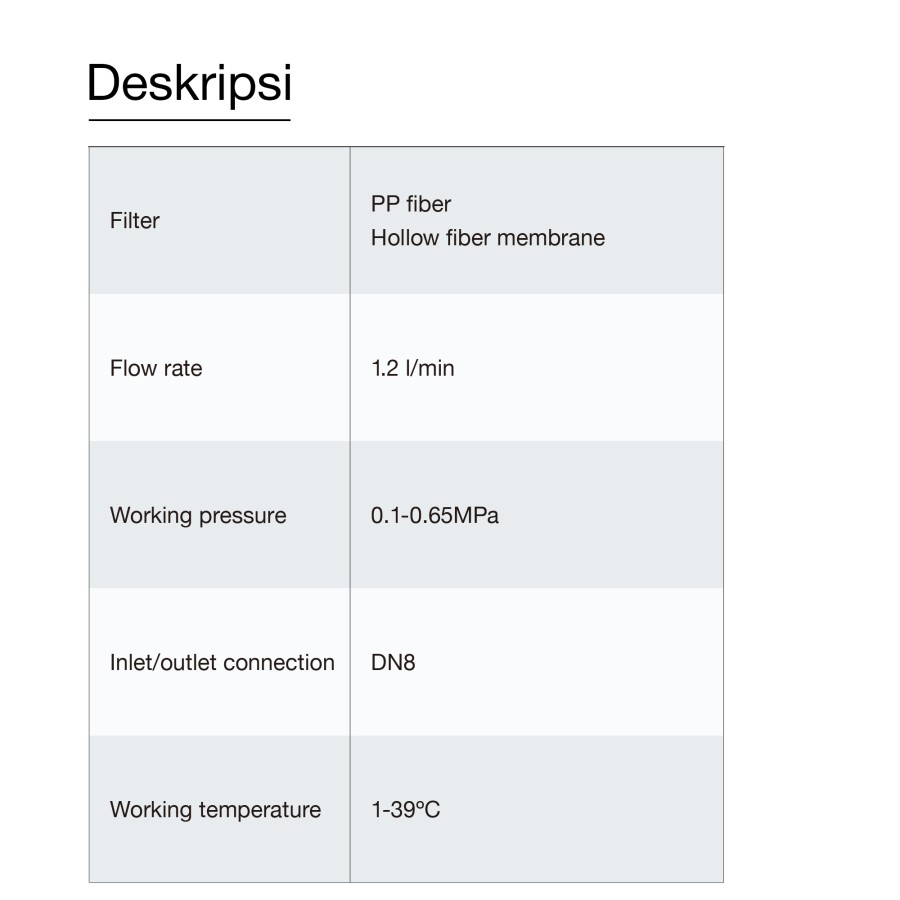 1. Hollow Fiber Membrane (HFM): Akurasi filter mencapai 0.01 μm, sehingga virus dan bakteria akan terpisah dari air